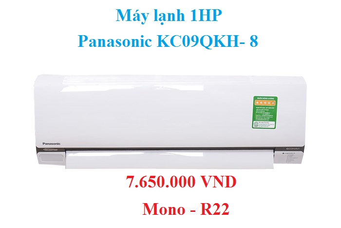 Mã sản phẩm : Panasonic KC09QKH- 8 Công suất lạnh : 1 HP - 9.040 BTU Loại máy : Điều hoà 1 chiều (chỉ làm lạnh) Công nghệ inverter : Máy lạnh không inverter